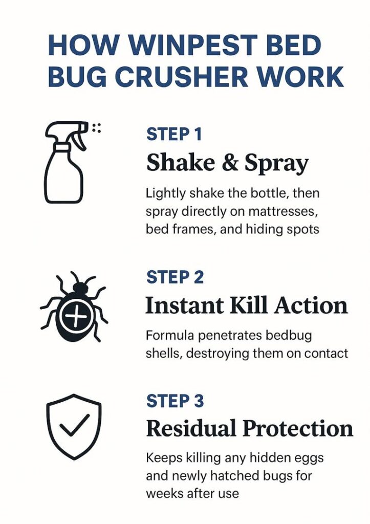 “I’ve tried sprays, powders, and even professional fumigation and still woke up with bites. Then I found THIS lab-tested, professional grade formulated “WINPEST BEDBUG CRUSHER” designed for fast, full-home eradication without toxic fumes. In Less than 7 Days, my bed, sofa, and carpets were completely bug-free“.